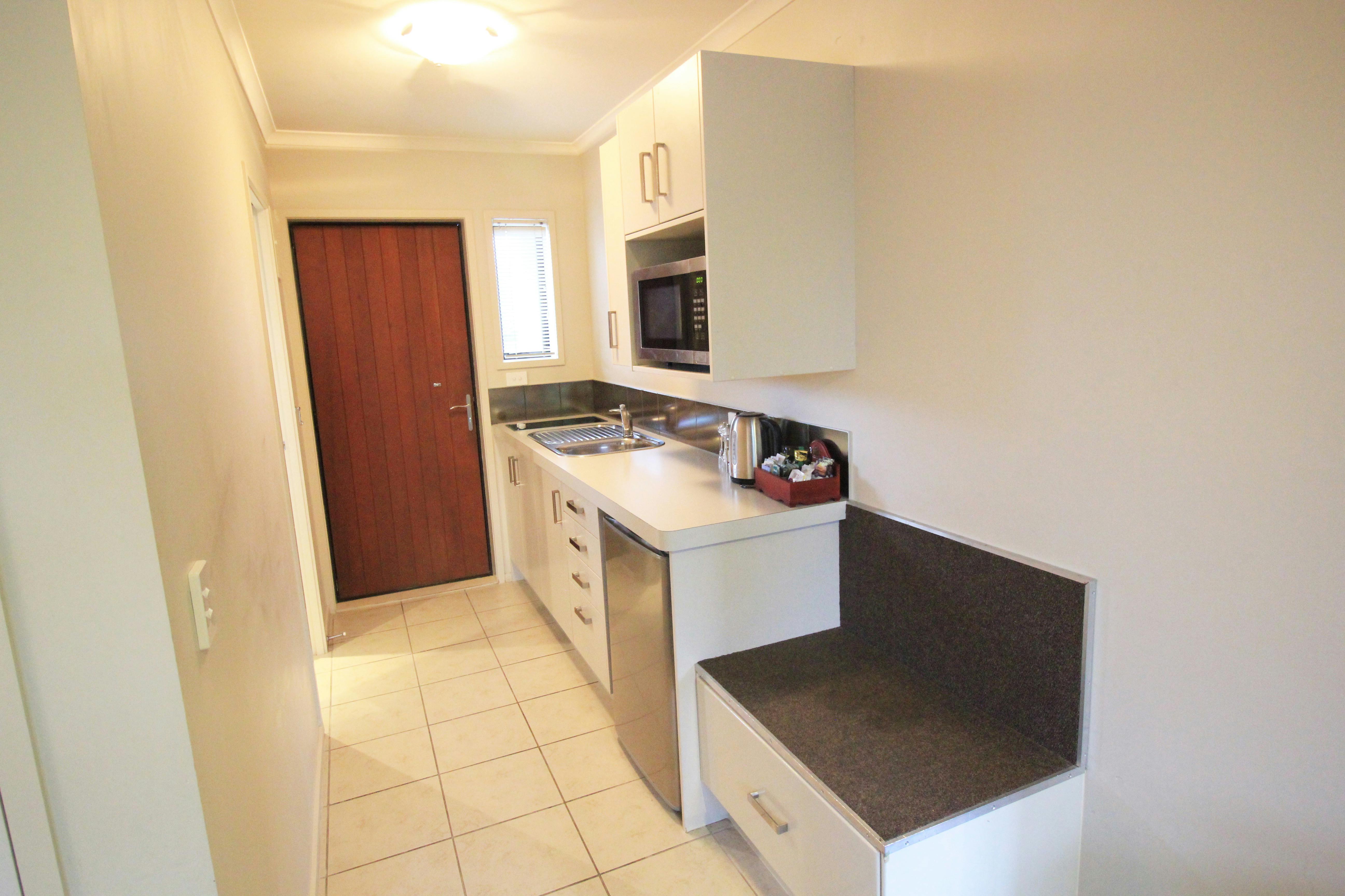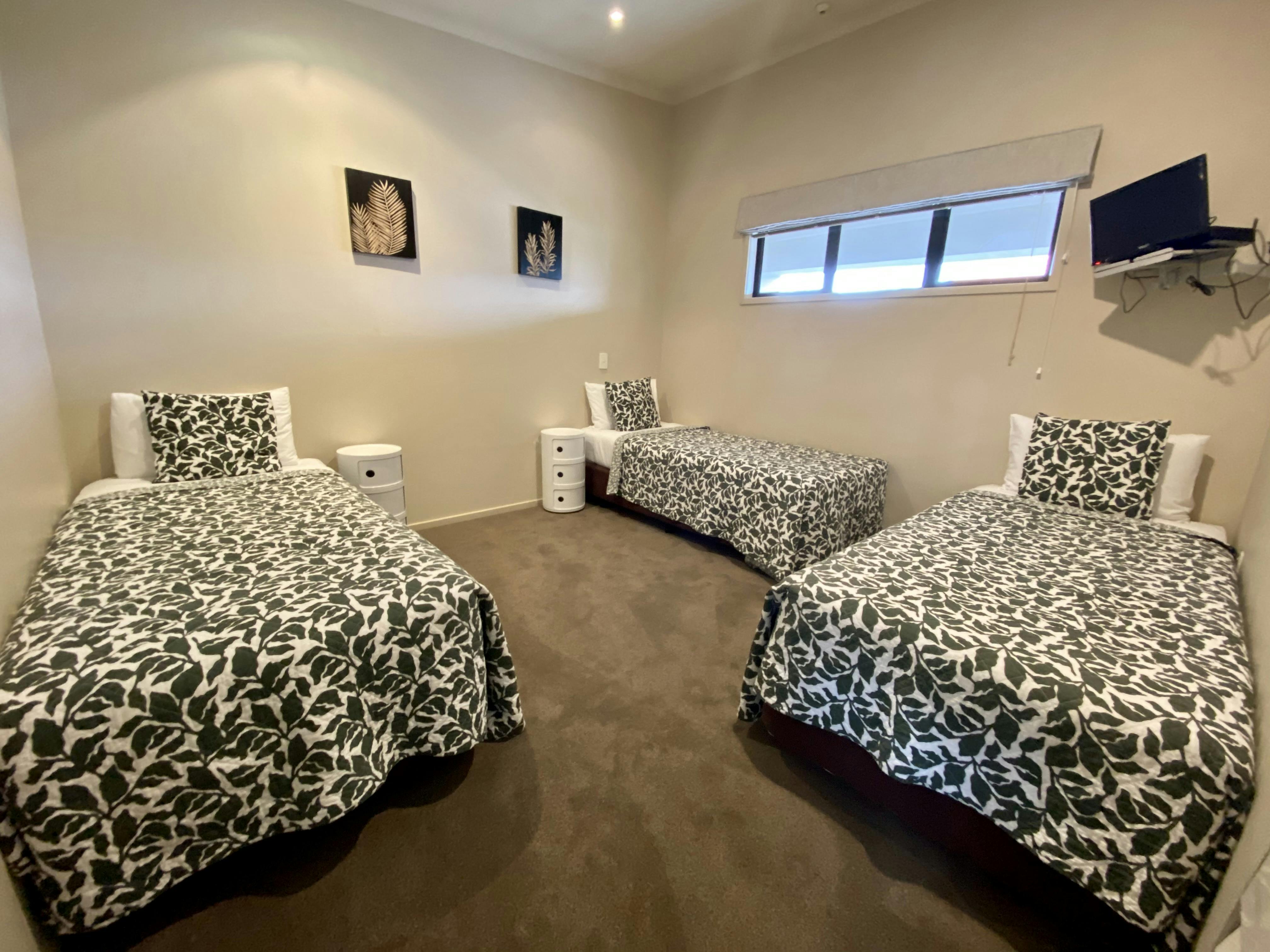 UPPER LEVEL. This family room features a queen bed in the lounge area and 3 single beds in a separate bedroom with a second TV. Kitchen with ceramic hobs and microwave. Sleeps 5 persons - rate is for 4 persons. Extra person $30.
